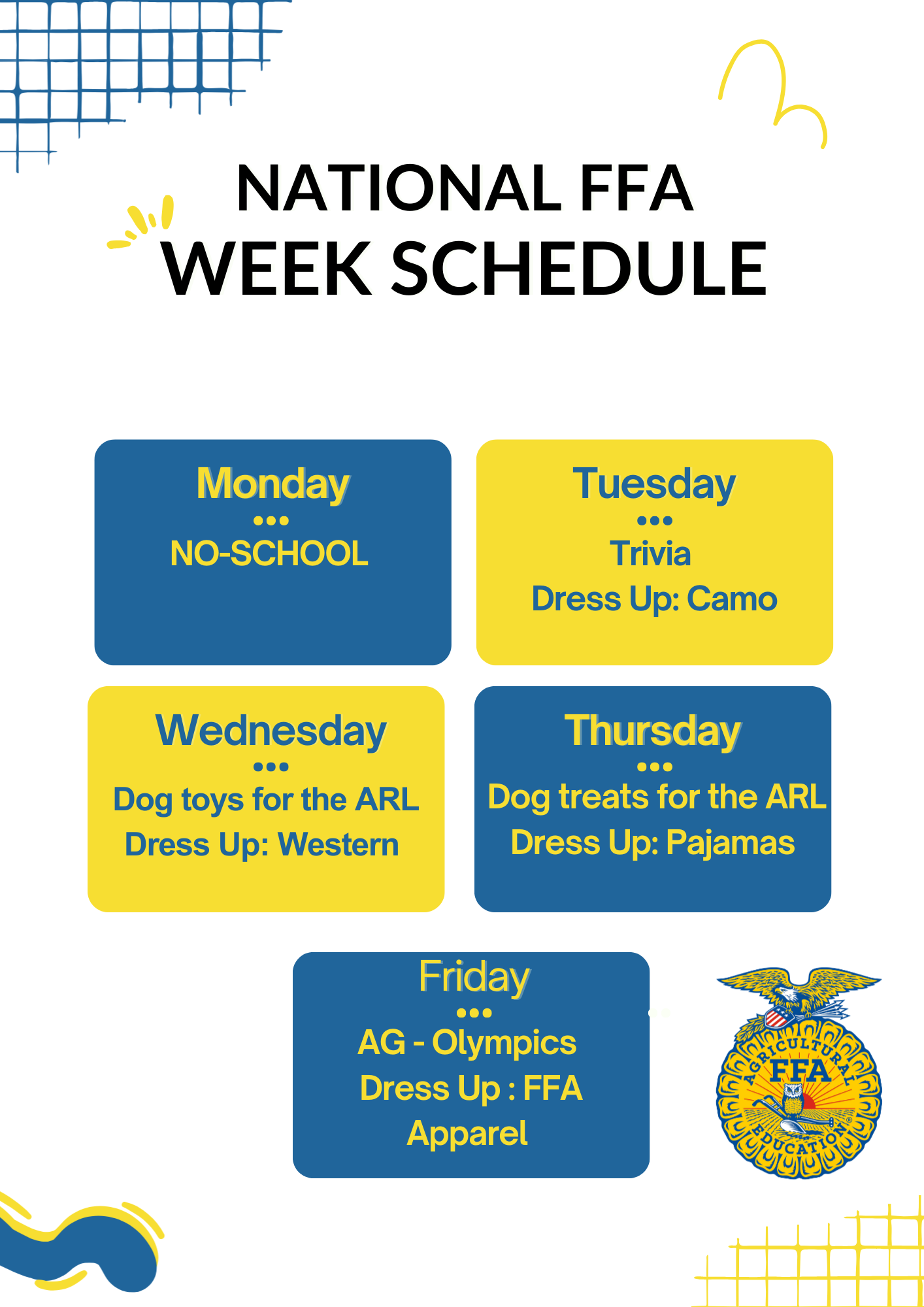 Our purpose as an FFA chapter is to make a positive difference in the lives of students by developing their potential for premier leadership, personal growth and career success through agricultural education.